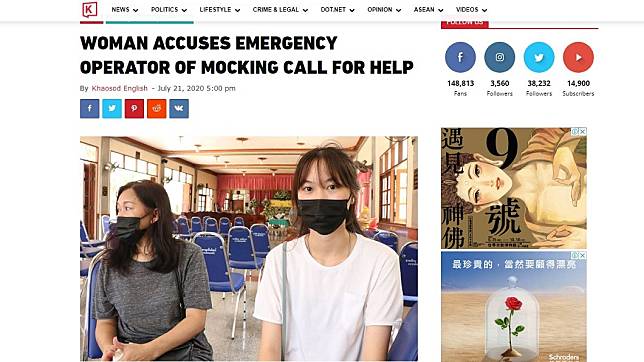 泰国1名少女因父亲呼吸困难去电叫救护车,没想到却被接线员恶整,导致父亲最後送医不治。(图翻摄自脸书社团สถานีข่าว @ ปราจีนบุรี)