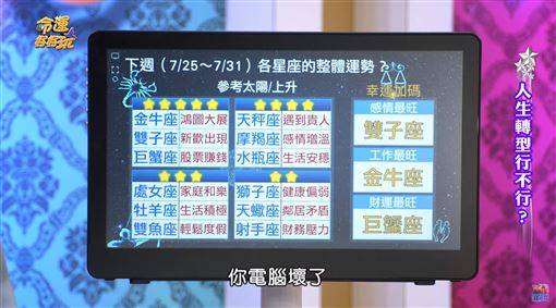 運勢加碼的部分,感情運最佳的是雙子座,事業運最好的是金牛座,財運最旺也適合買彩券的是巨蟹座。