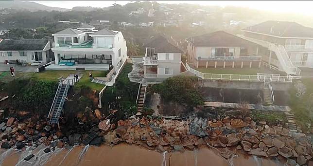 澳洲東部的溫貝拉爾海灘風景秀麗,但沿岸「海景第一排」豪宅,已被不斷往上拍打的海浪沖走。(圖/翻攝YouTube)